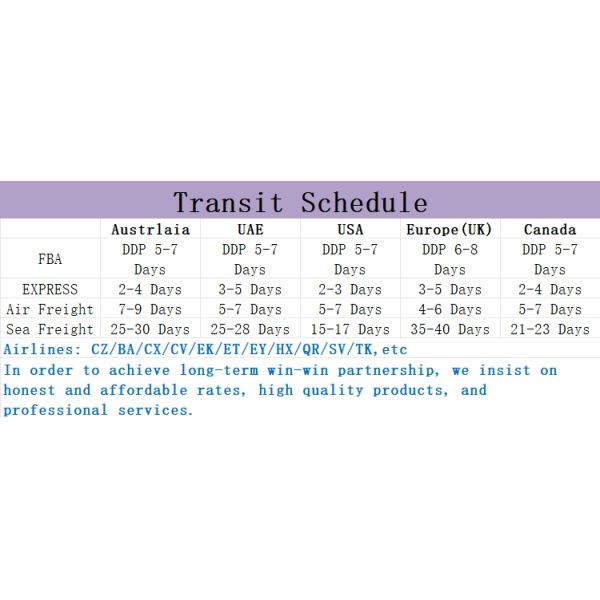| International air freight | 5-7 working days |