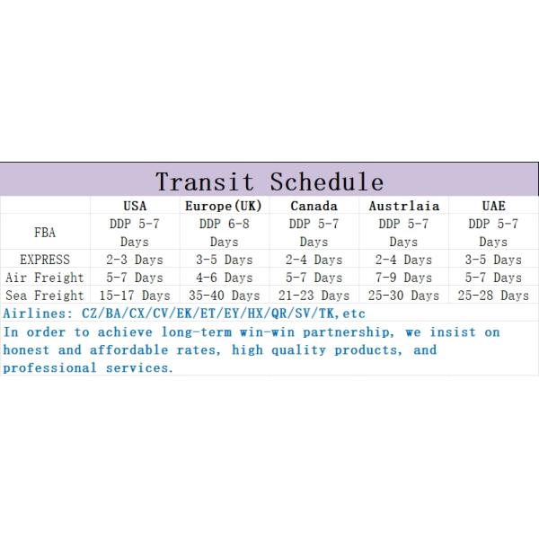 | International air freight | 5-7 working days |